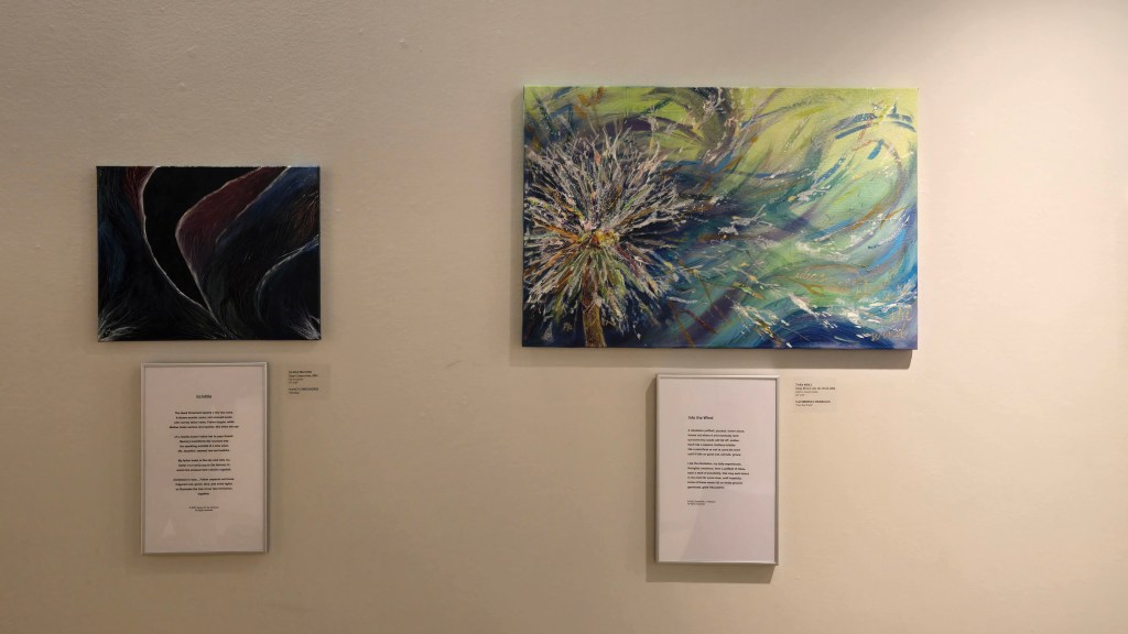 2024 Merging Visions — a paired and juried exhibition organized by the Denton Poets Assembly. Exhibition location: Gough Galley, Patterson-Appleton Art Center, Denton, Texas (May 11, 2024 – August 3, 2024) (Title of artwork: Deep Connections; Size: 16″ x 20″)