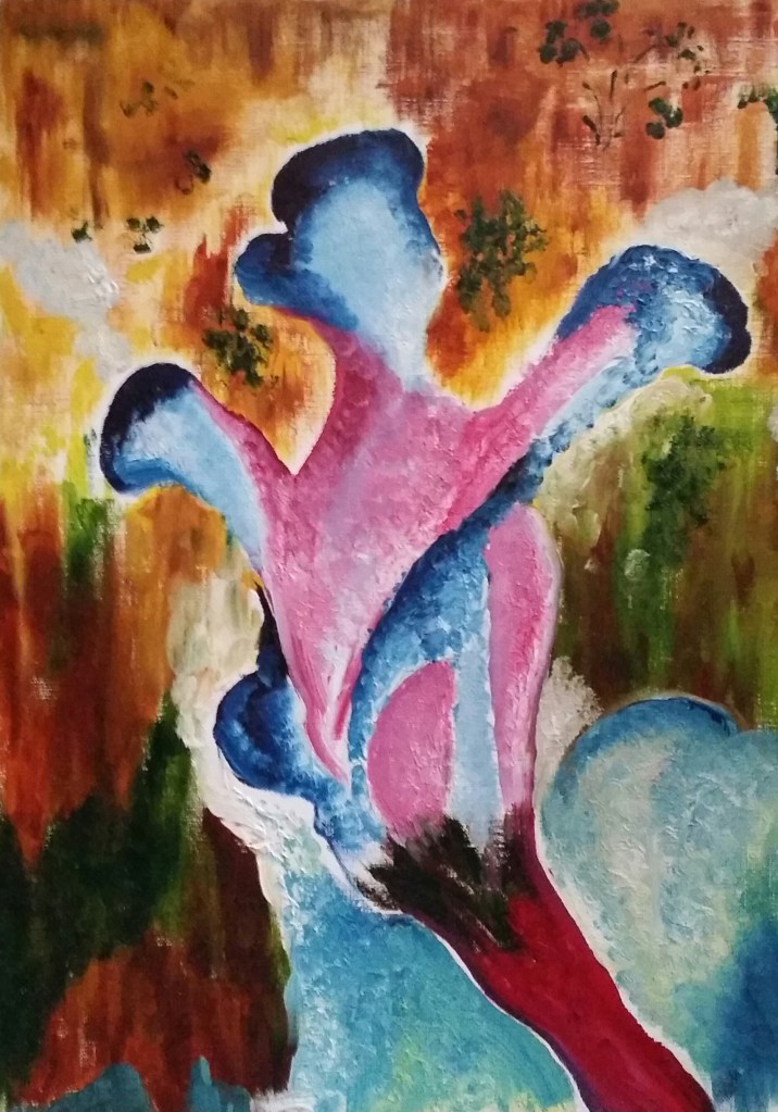 The series titled Impending Doom was done after an anaphylactic attack which landed me in the emergency twice in a row over a period of three days. This happened after an unwanted surgery that had severe side-effects on my body and my mind. After the incident I was feeling quite depressed and alone. Art came to my rescue and I painted non-stop until I recovered. Soon I decided to travel to Kashmir, where I continued to paint. It was a wonderful trip during which I also did my first solo painting exhibition in Srinagar. The show was hosted by the Jammu & Kashmir Academy of Art, Culture and Languages.