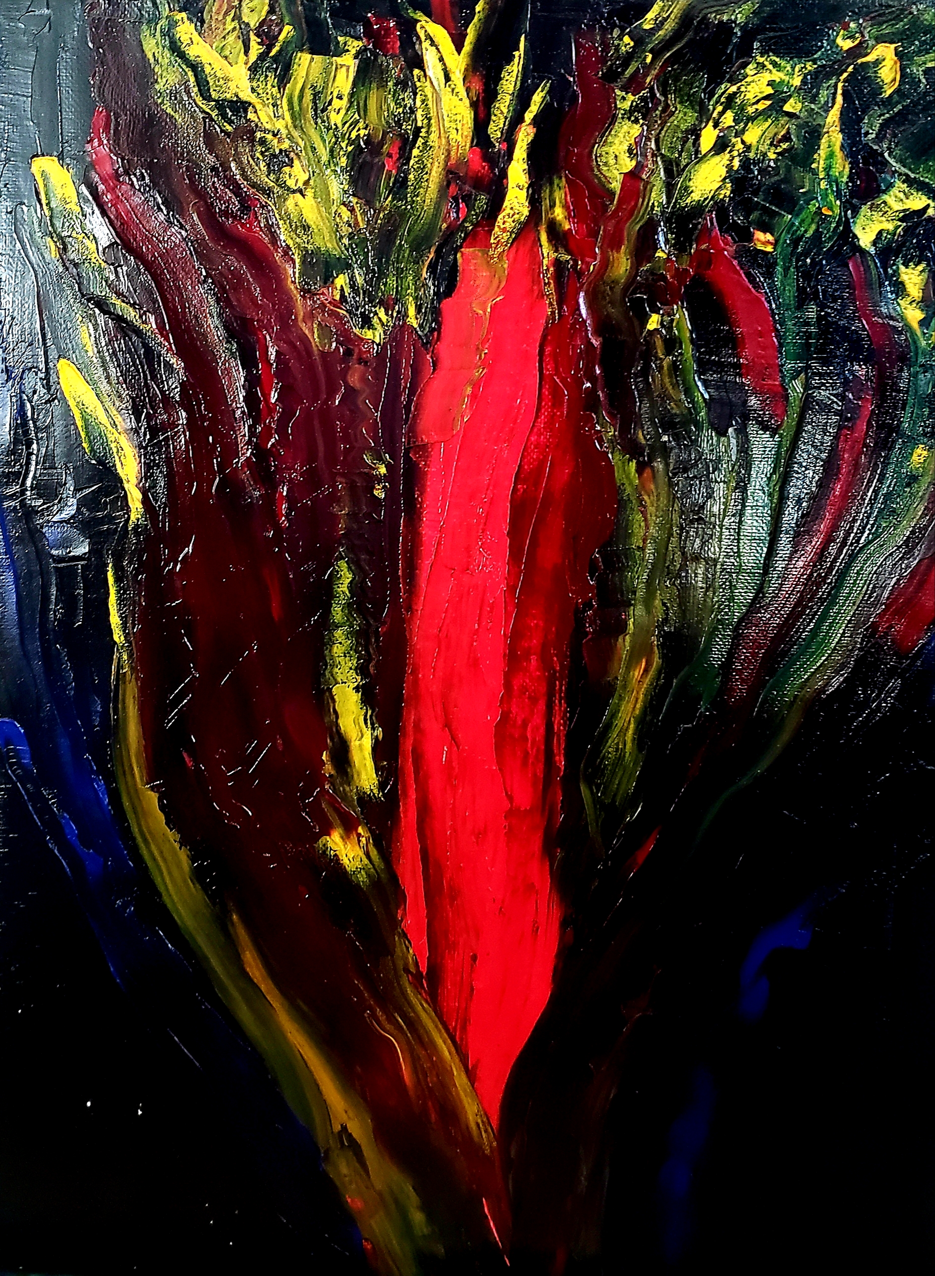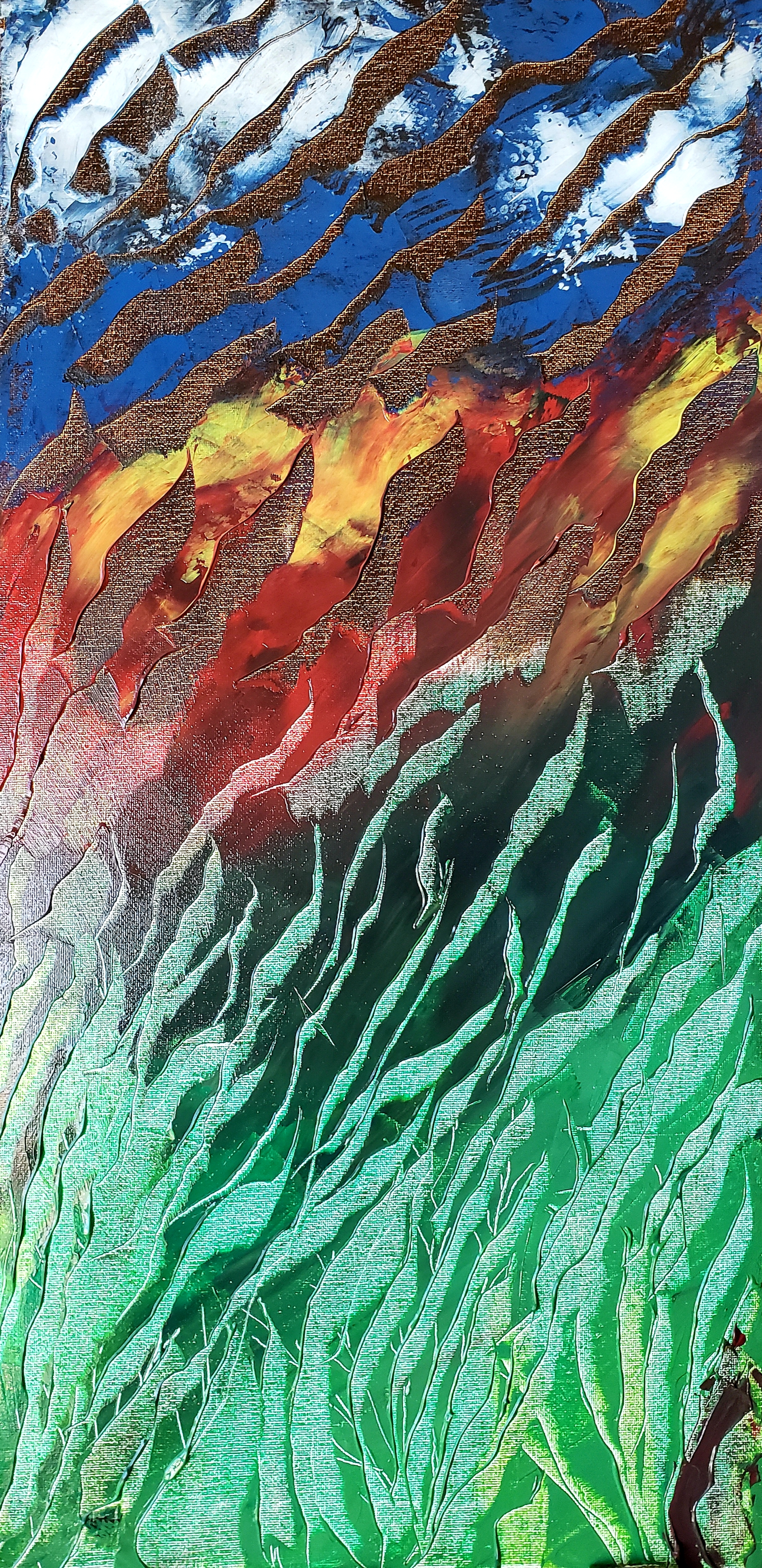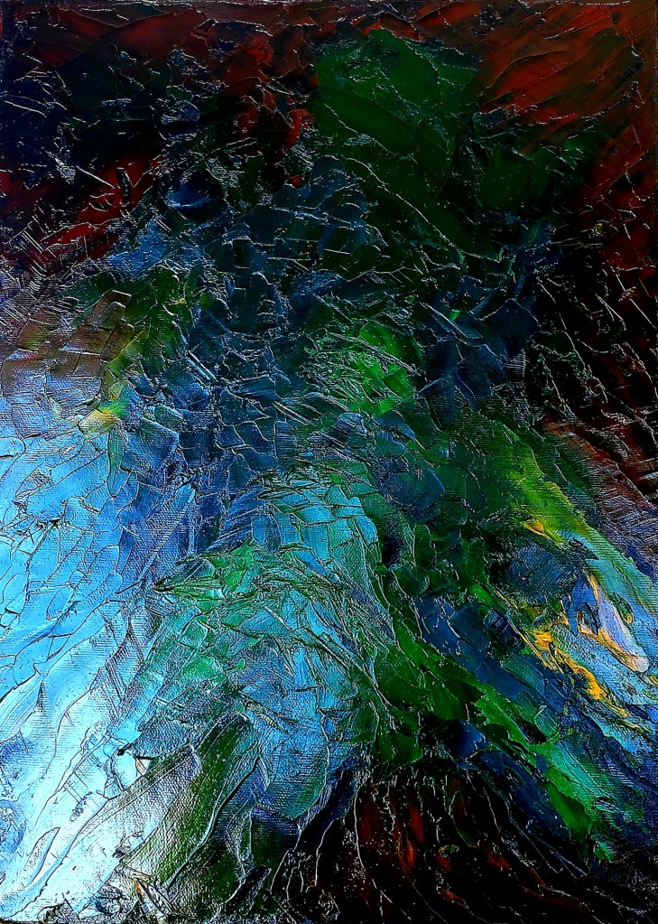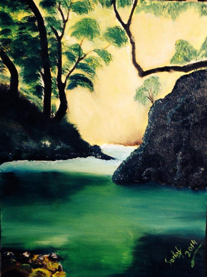 The items in this collection include abstract and semi-realistic paintings in oil on canvas. For many years I was hesitent to try oil colors as I did not have any formal training and the medium seemed a bit daunting to handle. The first ever painting I did in oil medium was a sunset while watching a training video by Bob Ross on YouTube. It turned out well and gave me some confidence. I used traditional techniques in the earliest ones, but started experimenting with new techniques over the years as can be seen in some of my more recents collections.