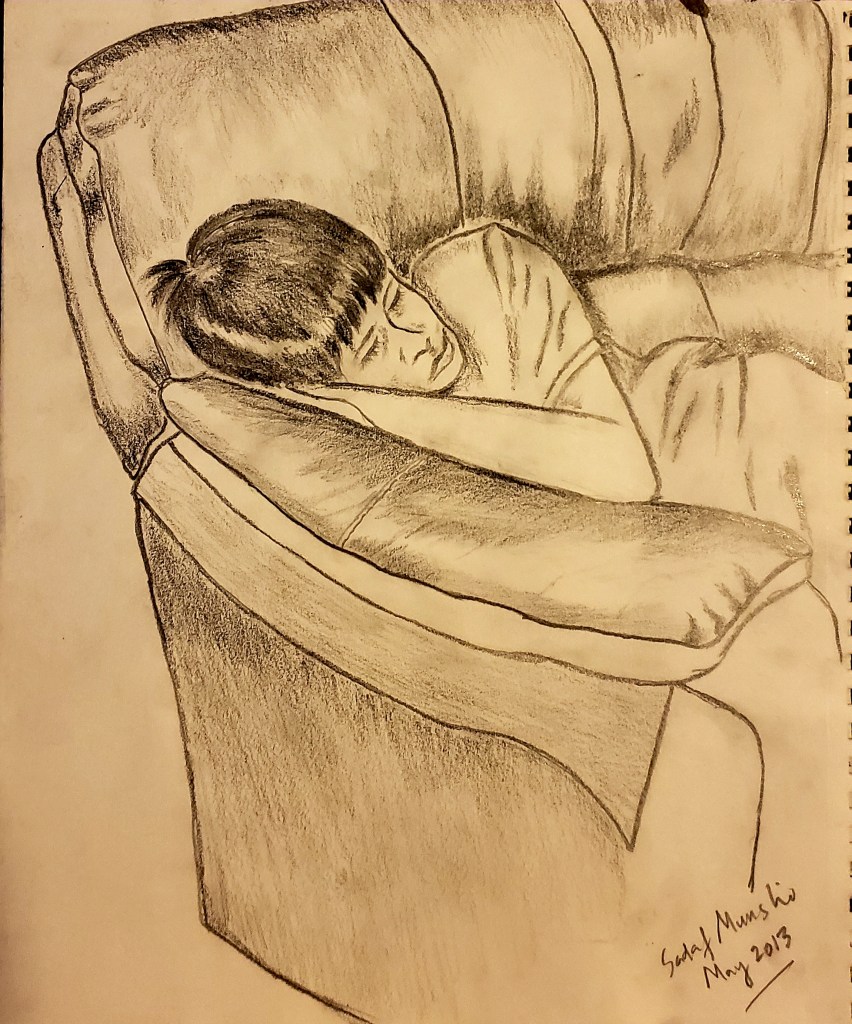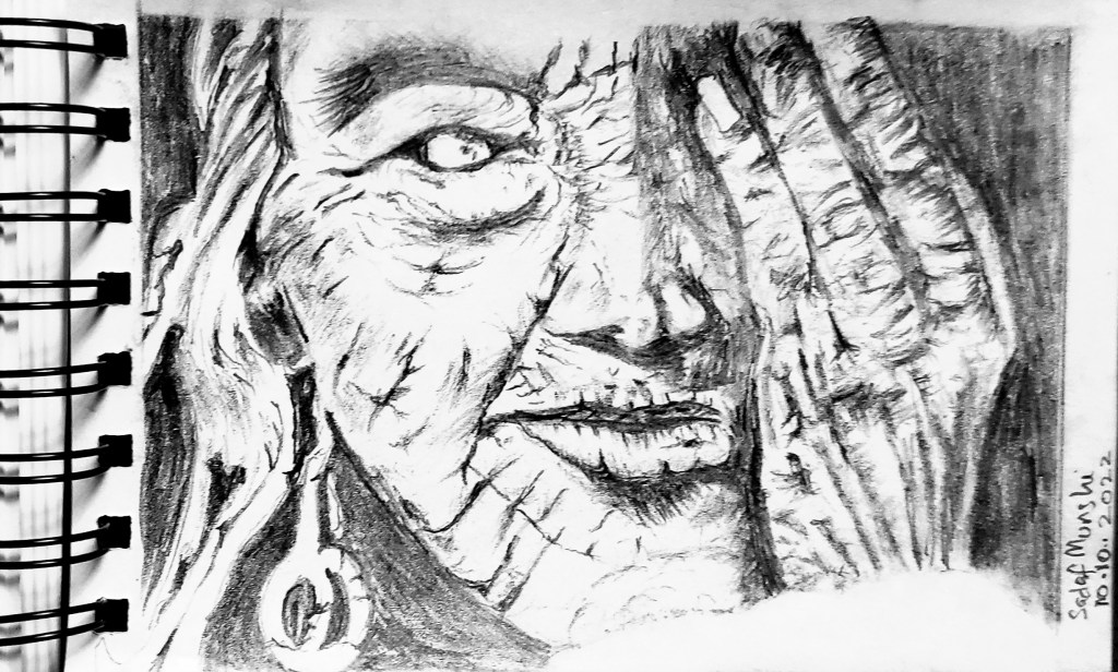 The collection below contains sketches done over a long span of time. Some notewothy protraits in this collection are those of my son sleeping on a sofa when he was a little boy, a friend looking at a picture in her cell phone with blue and purple light glowing on her hair, an old lady with cataract, and a native American man.