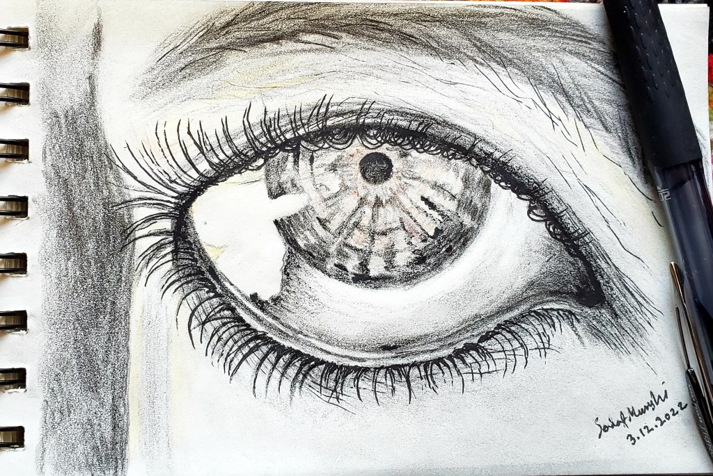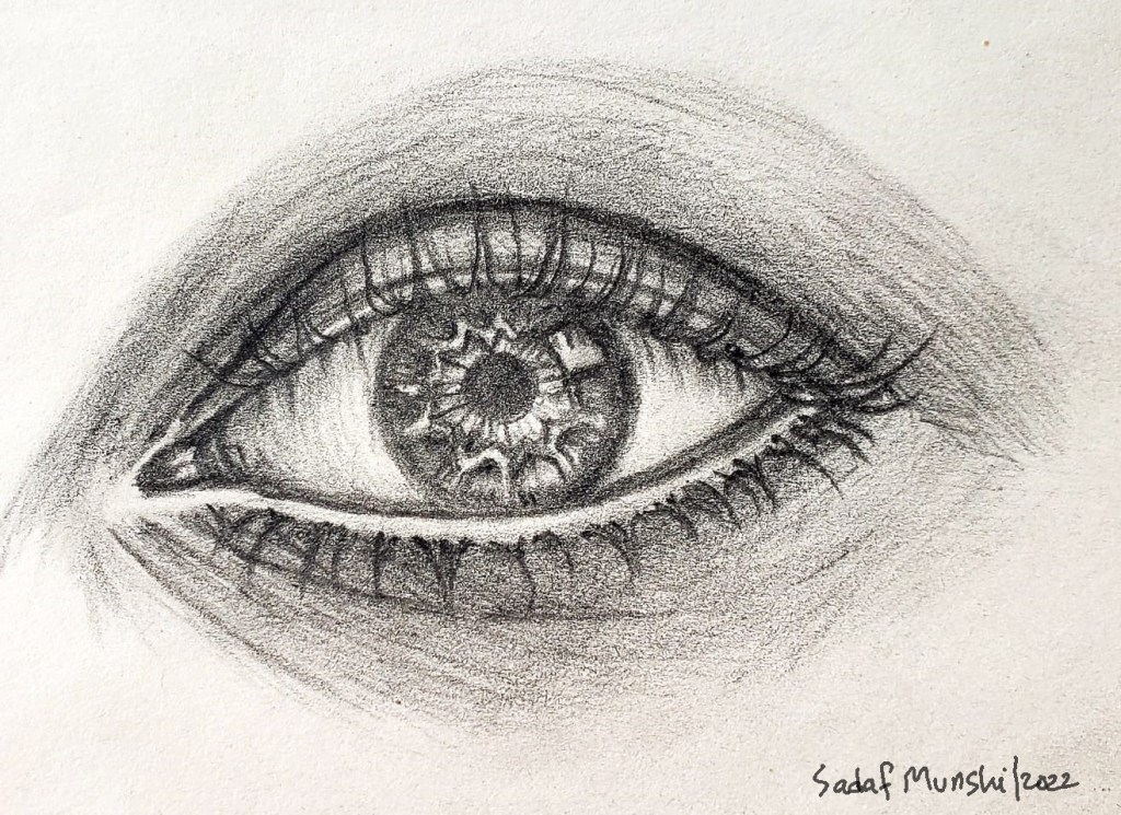 In the series below, I have tried to sketch the details of the human eye. While most of the sketches in this series are done using a sketch pencil, I have add some shades of color using dry water color pencils to a few.